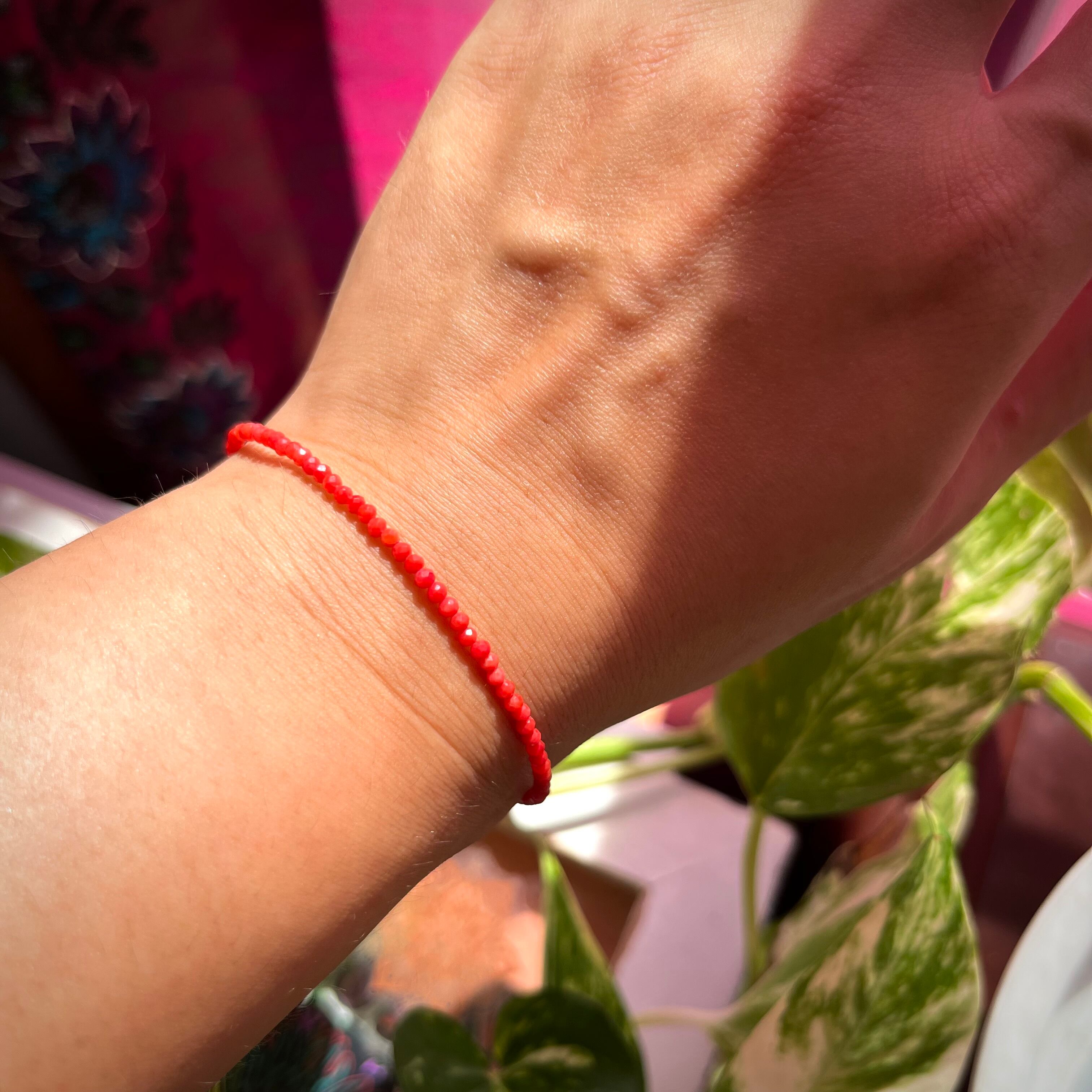 鮮やかなレッドコーラルを使用したハンドメイドのブレスレットが登場です。手元を華やかに演出し、見る人の目を引きつける魅力があります。シンプルながらも普段のコーディネートに力強いアクセントを加え、あなたの個性を一層引き立てるアイテムです。